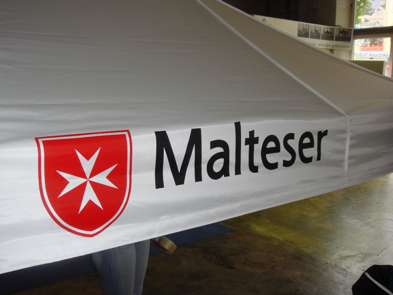 "Solch hochwertige werbliche Ge[-]stal[-]tung der Faltzelte ist für Sponsorpartner oft ein Grund, sich an den Kosten für Zelt und Gestaltung erheblich zu beteiligen. Es ist nicht unrealistisch, den gesamten Anschaffungspreis des Zeltes so wieder hereinzuholen.Fragen kostet doch nichts, oder …".