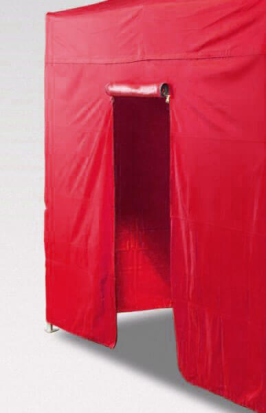 Die Seitenwände sind jeweils mit Klett und Flausch komplett in der Senk[-]rechten verbunden, so wird Ihr Faltzelt windsicher geschlossen.Eine Seitenwand ist zusätzlich mit zwei Reißverschlüssen als aufrollbare Tür versehen, die als Ein- bzw. Ausgang dient.