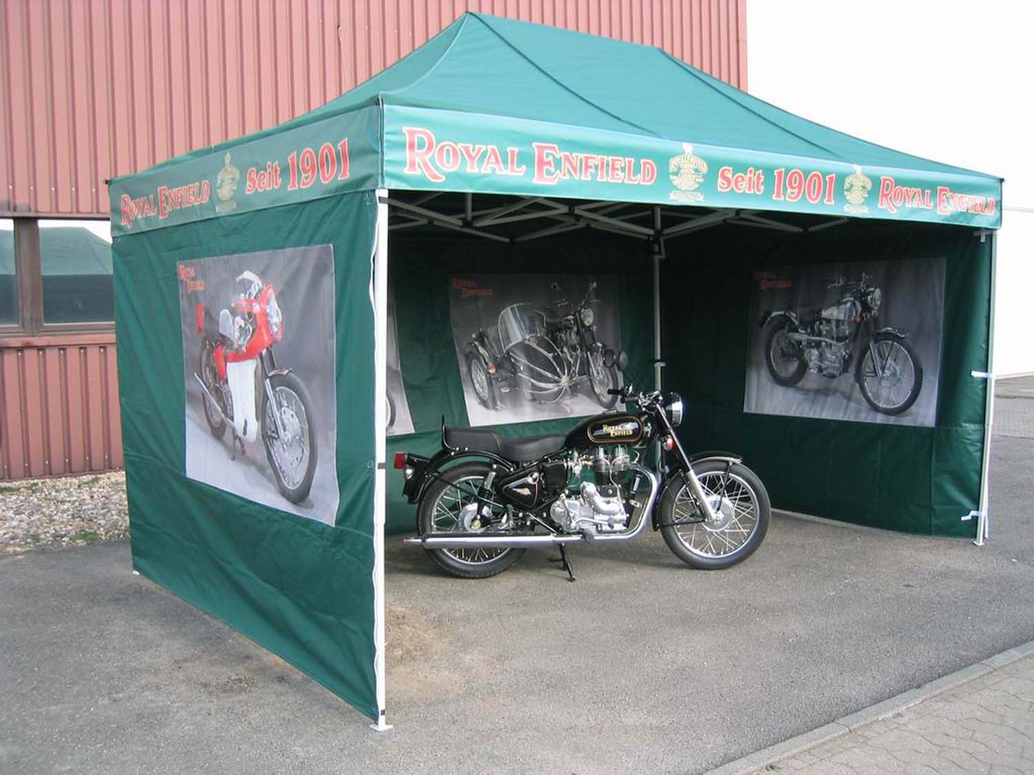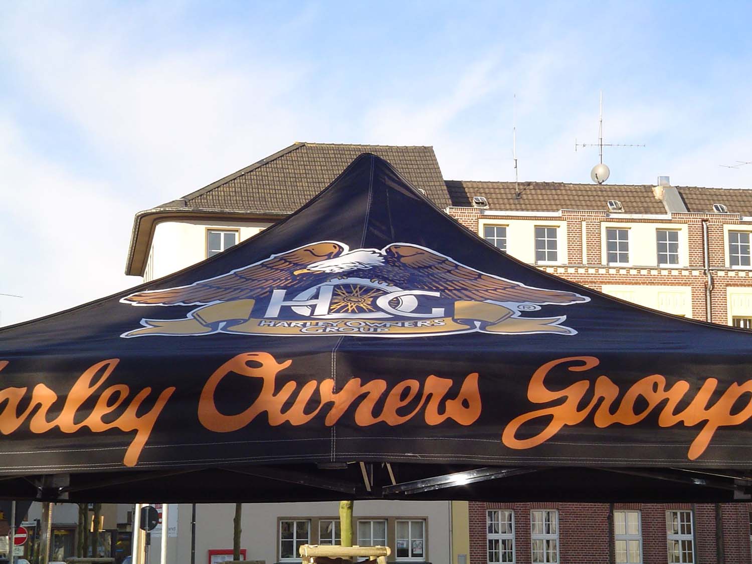 Ihr Infostand wird durch individuelle Be[-]schriftung z.B. mit Ihrem Firmen-Logo zum idealen Werbe[-]träger und bringt Ihr Markenzeichen wirk[-]ungs[-]voll zur Geltung. Am optisch wirkungsvollsten für Ihr Cooperate Identity (CI) ist der Volant (=gerader Teil des Daches), weil er dem Betrachter direkt „ins Auge“ springt. Der Volant kann bis zu 30cm hoch und über die komplette Zeltbreite gebrandet werden. Mit einem gebrandeten Infostand sieht und findet Sie beispielsweise jeder Besucher eines Stadtfestes.