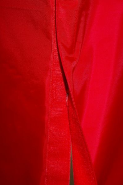 Die Seitenwände werden nicht nur in der Waagerechten mit breitem Klett [&] Flausch an dem Dach-Volant angebracht, sondern werden auch senkrecht miteinander mit Klett [&] Flausch verbunden. Dadurch wird die Stabilität des ganzen Faltzeltes um ein Vielfaches erhöht.