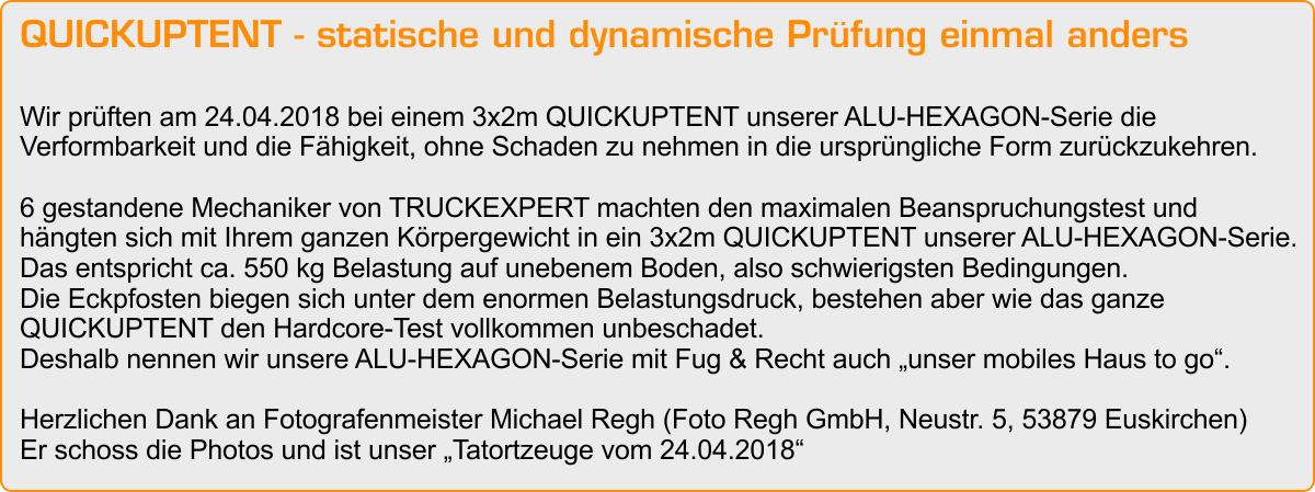 - winterfest [&] frostbeständig - alle Materialien sind für den Dauereinsatz bei Temperaturen unter dem Gefrierpunkt geeignet: somit können QUICKUPTENTs nicht nur im Sommer bei schönem Wetter im Winter unter dem Gefrierpunkt benutzt werden.