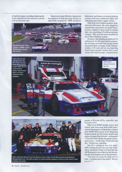 Ein Bericht über den von QUICKUPENT (DEM Faltpavillon-Anbieter) unterstützten AH-Racing BMW M1 aus dem amerikanischen Magazin Roundel.